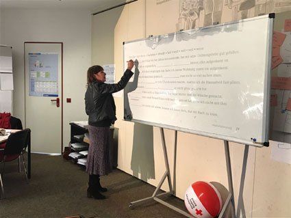 In diesen Kursen führen wir die teilnehmenden Eltern in 900 Unterrichtsstunden zum „Deutschtest für Zuwanderer“ (DTZ/B1). Gleichzeitig betreuen wir die Kinder unserer Teilnehmenden im gleichen Gebäude, bis sie für ihre Kinder einen Platz im Kindergarten oder in der Schule gefunden haben. So können alle Mütter und Väter entspannt und intensiv Deutsch lernen.
